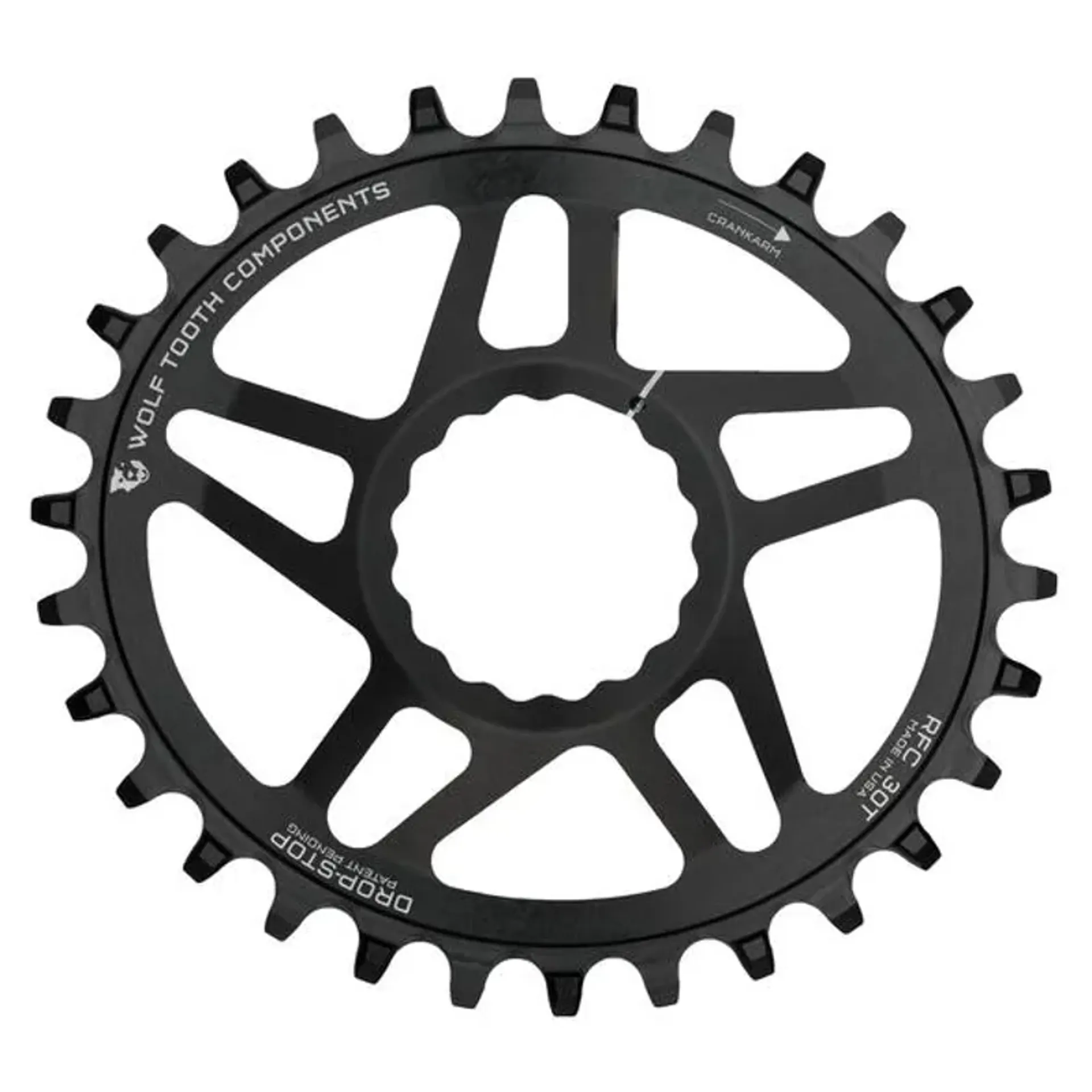 In line with Wolf Tooth's guiding ethos of providing unrivaled design innovation, reliability and durability, this chainring employs a patented drop-stop wide-narrow tooth profile which not only keeps the chain securely in place on single chainring setups but dislodges mud, dirt and excess precipitation more efficiently. For additional security in extreme conditions, this chainring is best used with a clutch-type rear derailleur.